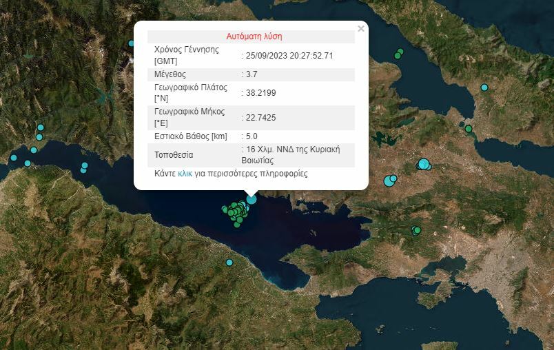 Σύμφωνα με το Γεωδυναμικό Ινστιτούτο, το επίκεντρο εντοπίζεται 16 χιλιόμετρα νότια νοτιοδυτικά της Κυριακής Βοιωτίας.