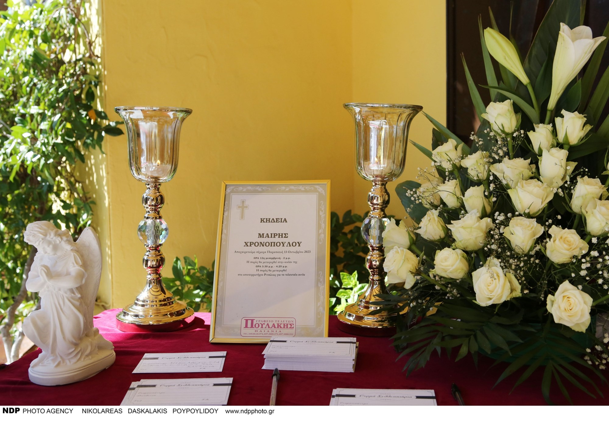 Η ίδια η Μαίρη Χρονοπούλου είχε ζητήσει όταν θα φύγει από τη ζωή να γίνει ένα πάρτι στον κήπο του σπιτιού της για τους φίλους της, με γαρίδες, άφθονο κρασί και γλυκίσματα.